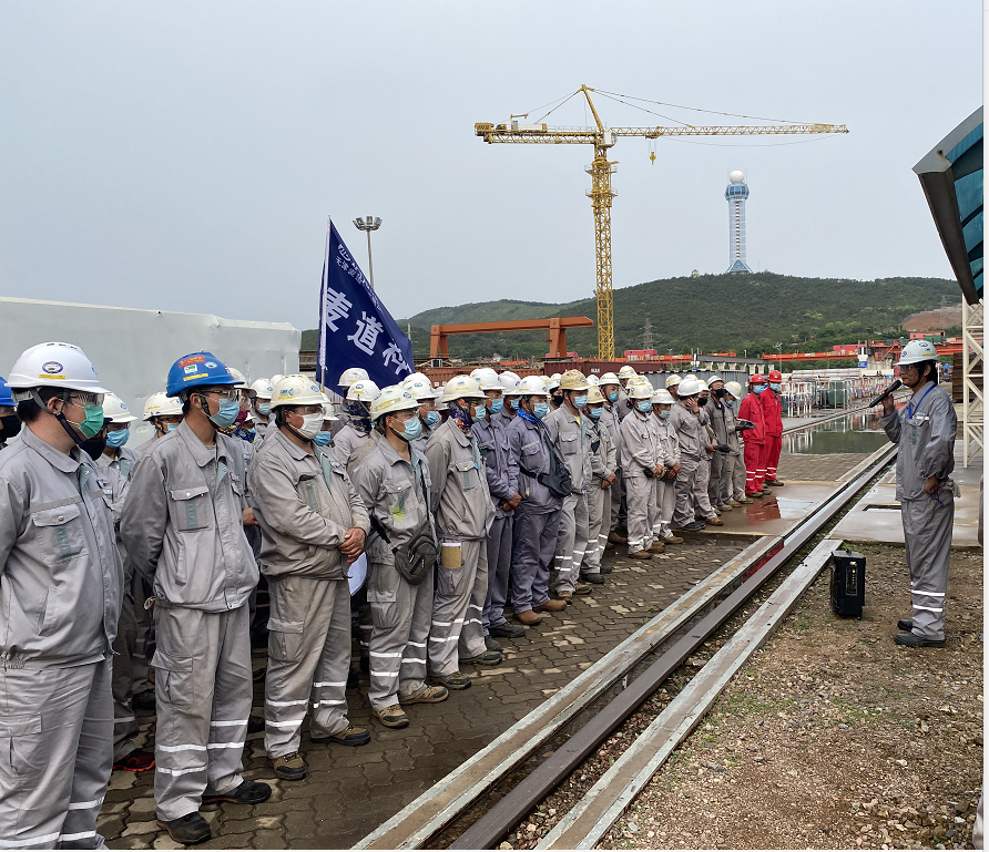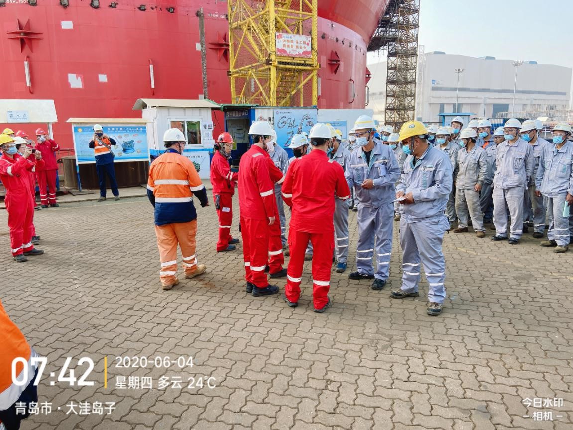 6月 4日,企鹅项目与甲方海工青岛公司,总包方 Fluor,业主方 Shell共同在现场举行了企鹅项目安全生产月启动仪式,并现场发放“安全观察 卡”,总包方建造经理 Mr.Gramha发表了讲话,并进行了现场合影。